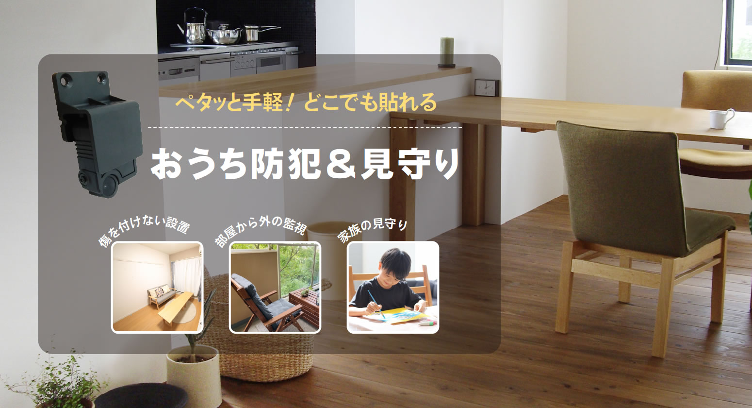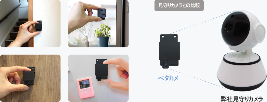 超小型でスタイリッシュ、ペタっと貼るだけのPeta Cameは、手軽さと多様な使い方で見守りや防犯に使い勝手がいいカメラです。